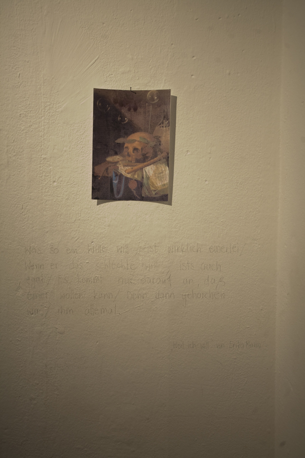 (bleistift auf wand unter digitaldruck; vanitas von unbekanntem)